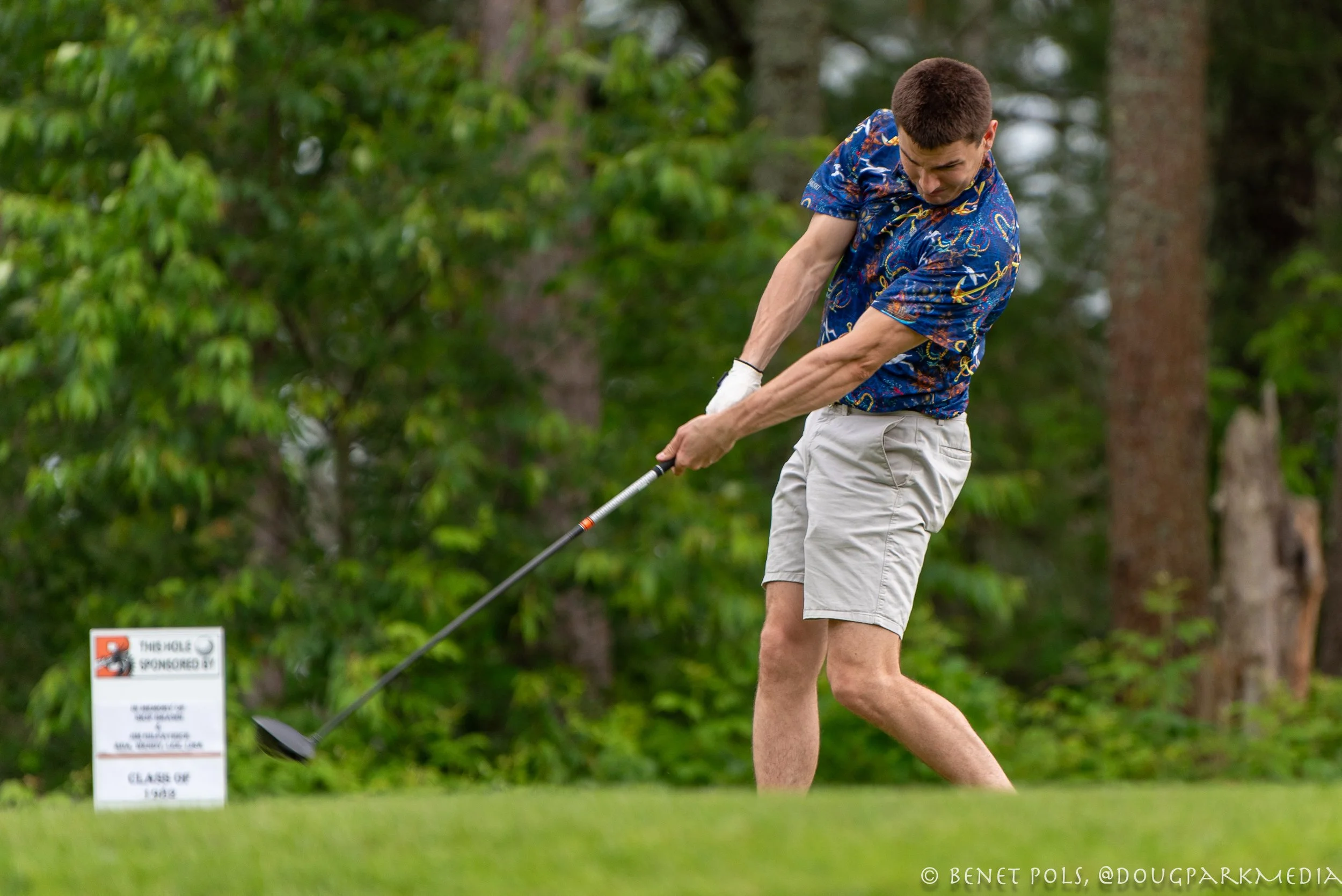 Charlie Gordon a previous honoree with a BASAF scholarship in his name played; here his son Blake tees off